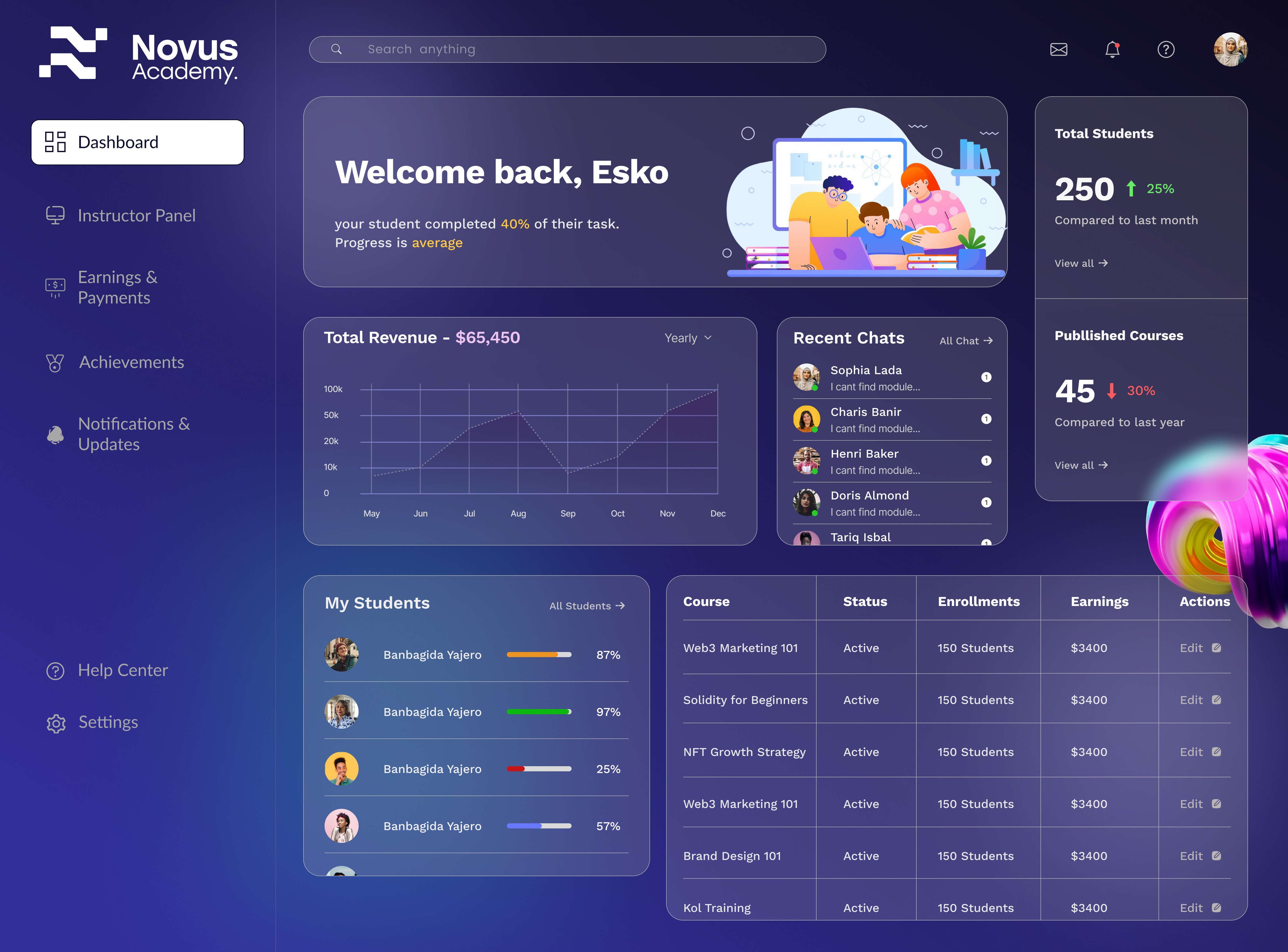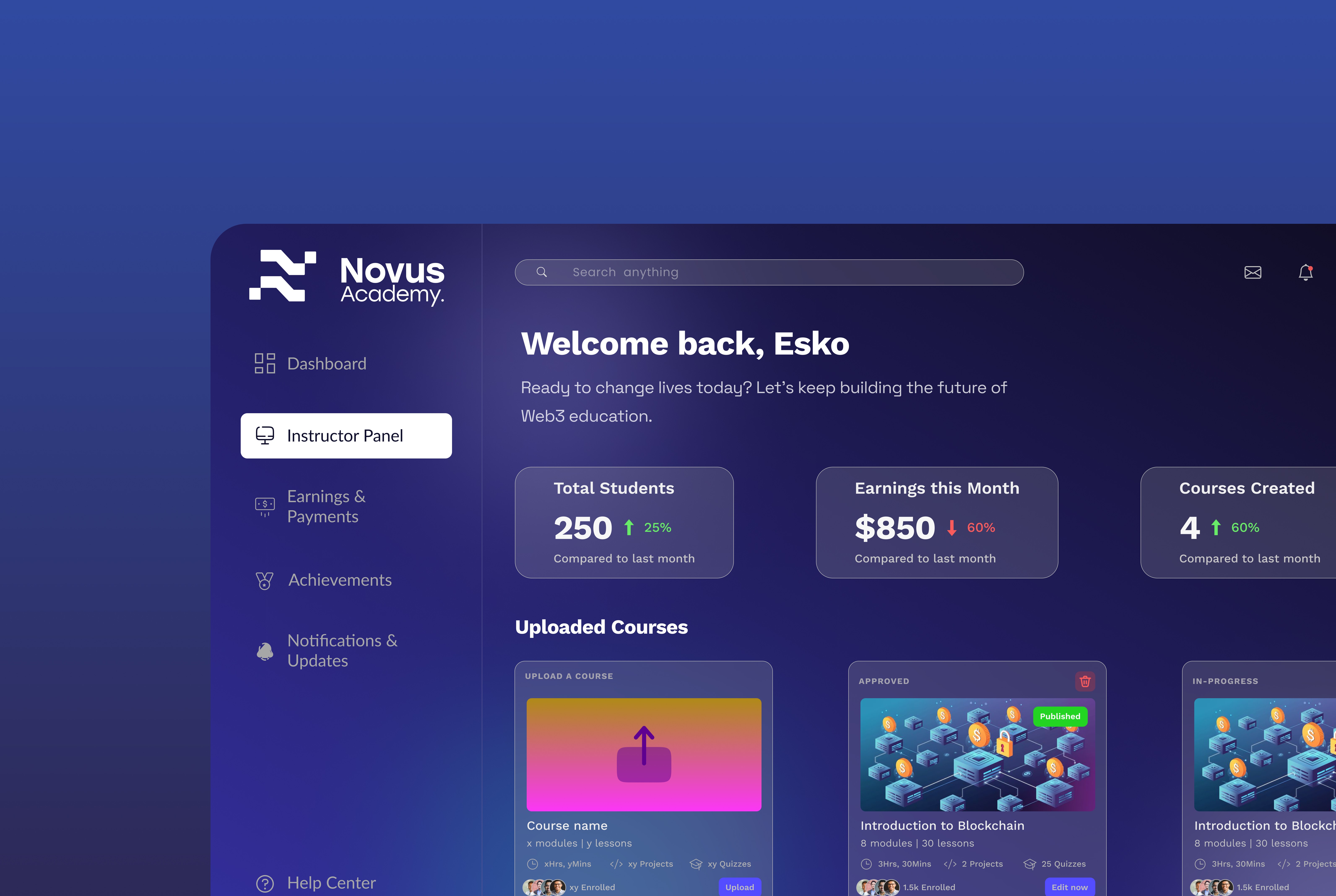 The platform now feels like a Web2-grade experience with Web3 logic under the hood. Early users completed courses faster, felt less overwhelmed, and could connect their wallets smoothly. For the Novus team, the design became the foundation for pitching partners and running cohort-based programs.